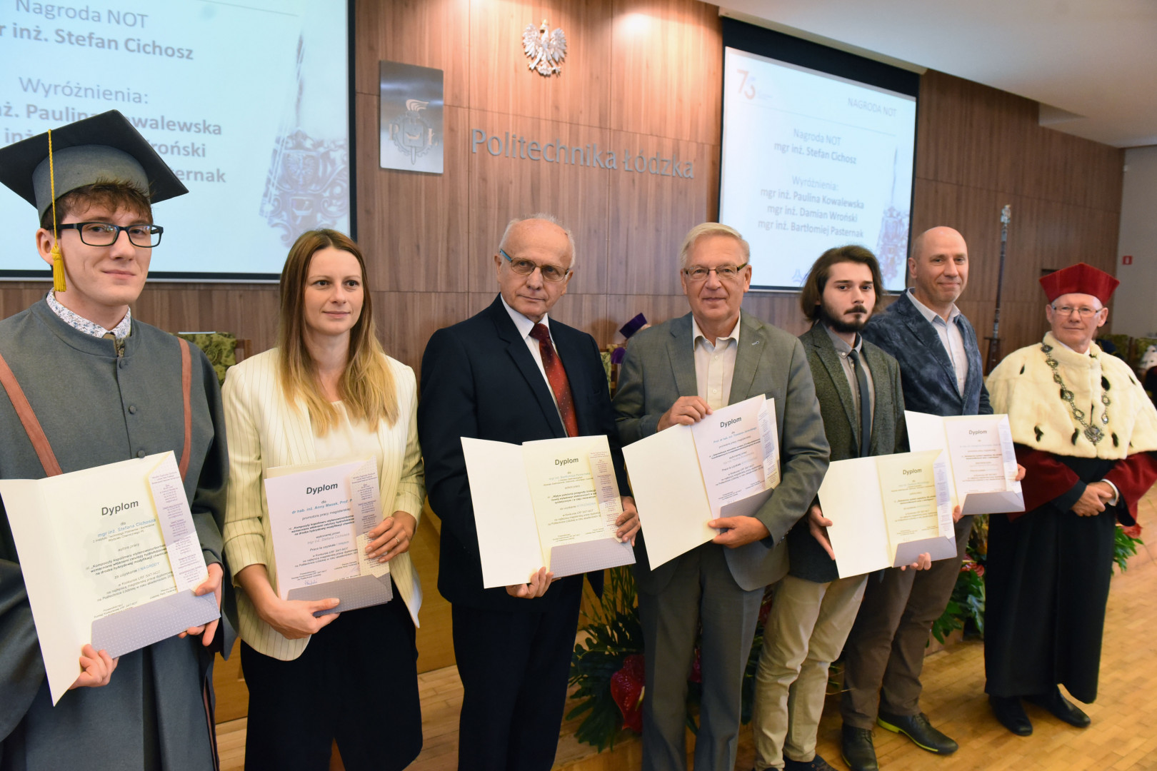 W czasie uroczystości wręczono nagrody laureatom Konkursu na najlepszą pracę magisterską w Politechnice Łódzkiej organizowanego przez Łódzką Radę SNT-NOT oraz Radę Uczelnianą FSNT NOT w PŁ.