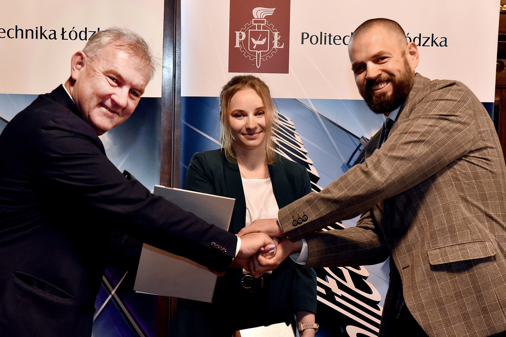 Biotechnika jest firmą, która zajmuje się projektowaniem i budowaniem instalacji biotechnologicznych. Obecnie szczególnie poszukiwane są rozwiązania przyjazne środowisku. Taki właśnie jest projekt, którego dotyczy porozumienie zawarte 28 marca. Podpisali je: rektor PŁ prof. Krzysztof Jóźwik, właściciel Biotechniki mgr inż. Jan Kapela oraz inż. Dominika Gibka, która przez najbliższe półtora roku będzie pracowała nad projektem. Studentka Wydziału Biotechnologii i Nauk o Żywności jest absolwentką studiów I stopnia na kierunku biogospodarka i kontynuuje kształcenie na biotechnologii. Grant badawczy przekazany przez firmę na realizację projektu to kwota 100 tysięcy złotych.