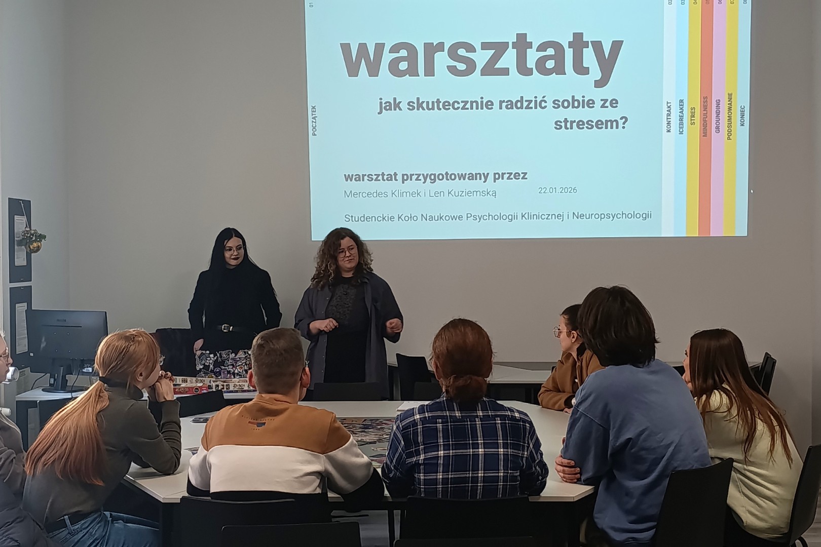 Warsztaty o zdrowiu psychicznym (22.01.) poprowadzili członkowie SKN Psychologii Klinicznej i Neuropsychologii z Uniwersytetu Łódzkiego. Ich tematy: