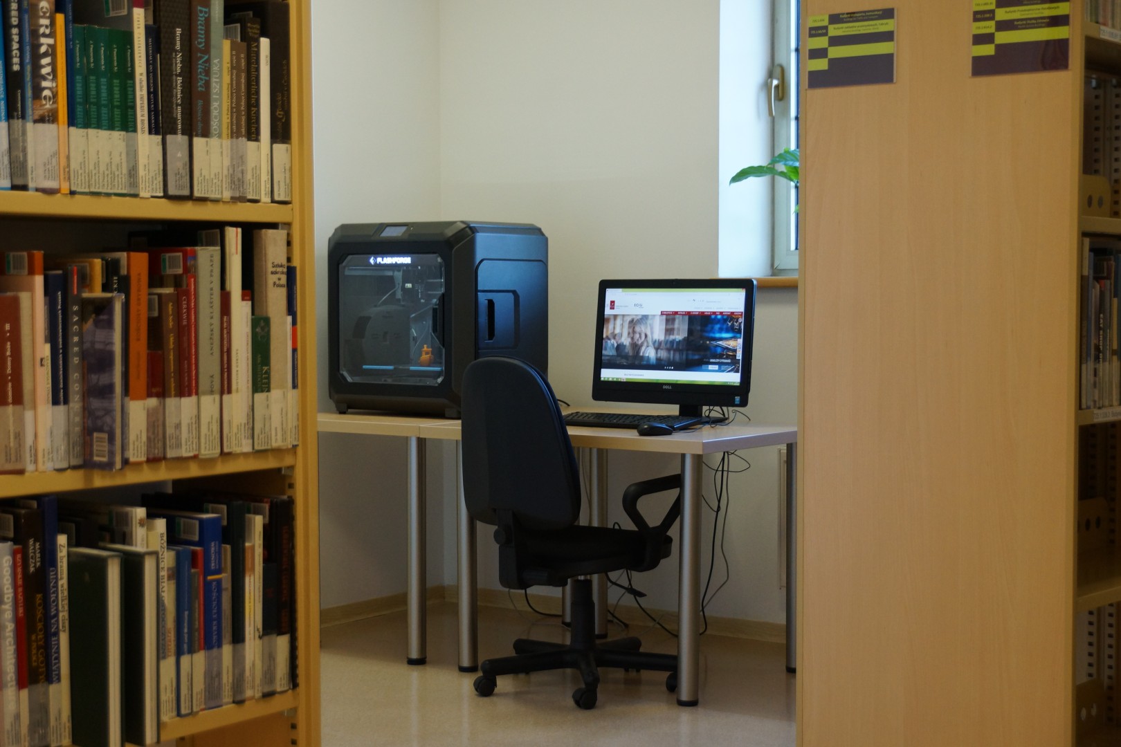 Czytelnicy mogą korzystać z komputerów z dostępem do Internetu, skanerów w formatach A4 i A3, kolorowej drukarki laserowej (A4 i A3), a także z nowoczesnej drukarki 3D Flashforge Creator 3 Pro.
