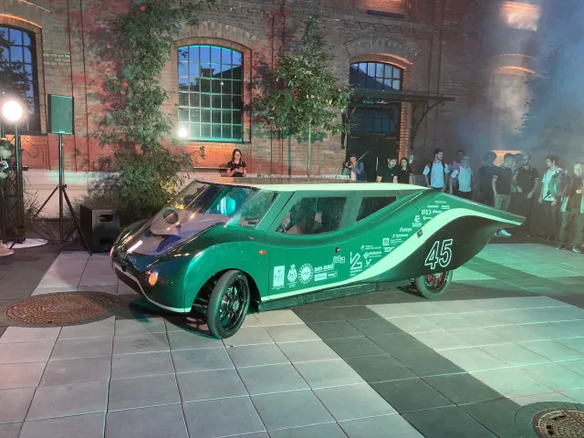 Prezentacja nowej wersji Eagle Two, elektrycznego auta stworzonego przez studentów PŁ odbyła się w klimatycznej scenerii architektury Monopolis.