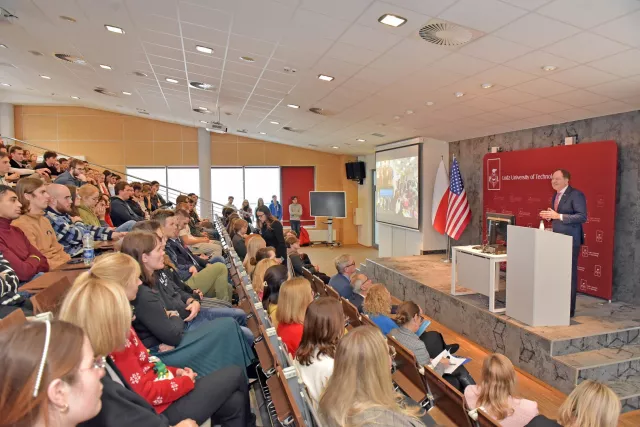 6 grudnia 2023 roku wizytę w Politechnice Łódzkiej złożył Jego Ekscelencja Mark Brzezinski – Ambasador Stanów Zjednoczonych w Polsce. Głównym celem przyjazdu Ambasadora było spotkanie ze studentami.