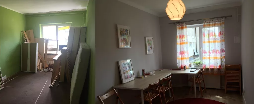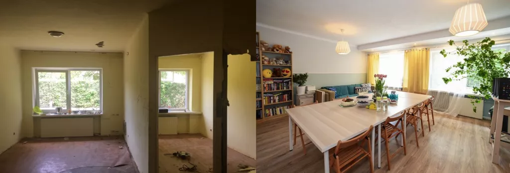 Prace objęły: malowanie 400 m2 ścian i sufitów, odnowienie 2 łazienek, 5 pokoi, 50 m2 gładzi, położenie 100 m2 paneli podłogowych, wymianę ościeżnic i drzwi, położenie płytek w kuchni oraz w korytarzu, wyburzenie dwóch ścianek działowych i aranżację nowo powstałego pomieszczenia.