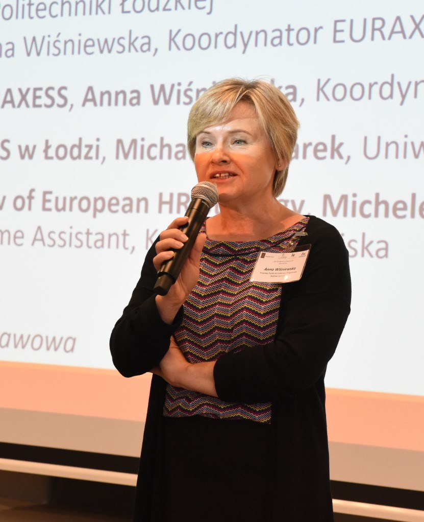 Anna Wiśniewska, koordynator EURAXESS Polska mówiła o zadaniach tej europejskiej sieci, podkreślając korzyści dla naukowców. To m.in. wspieranie mobilności na europejskim obszarze badawczym, pozyskiwaniem partnerów projektów badawczych, prezentowanie ofert pracy i wspieranie naukowców w rozwoju ich karier.