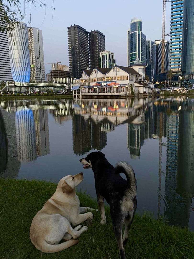 Batumi to także psy - według naszych kryteriów bezdomne, a tak naprawdę pod opieką miasta i jego mieszkańców. Psy spotkać można wszędzie. Szczególnie zapamiętałam jednego biorącego kąpiel morską w blasku zachodzącego słońca, a potem bezpardonowo otrząsającego się z wody prosto na turystów, którzy wylegli na plażę, aby podziwiać słońce wpadające do morza.