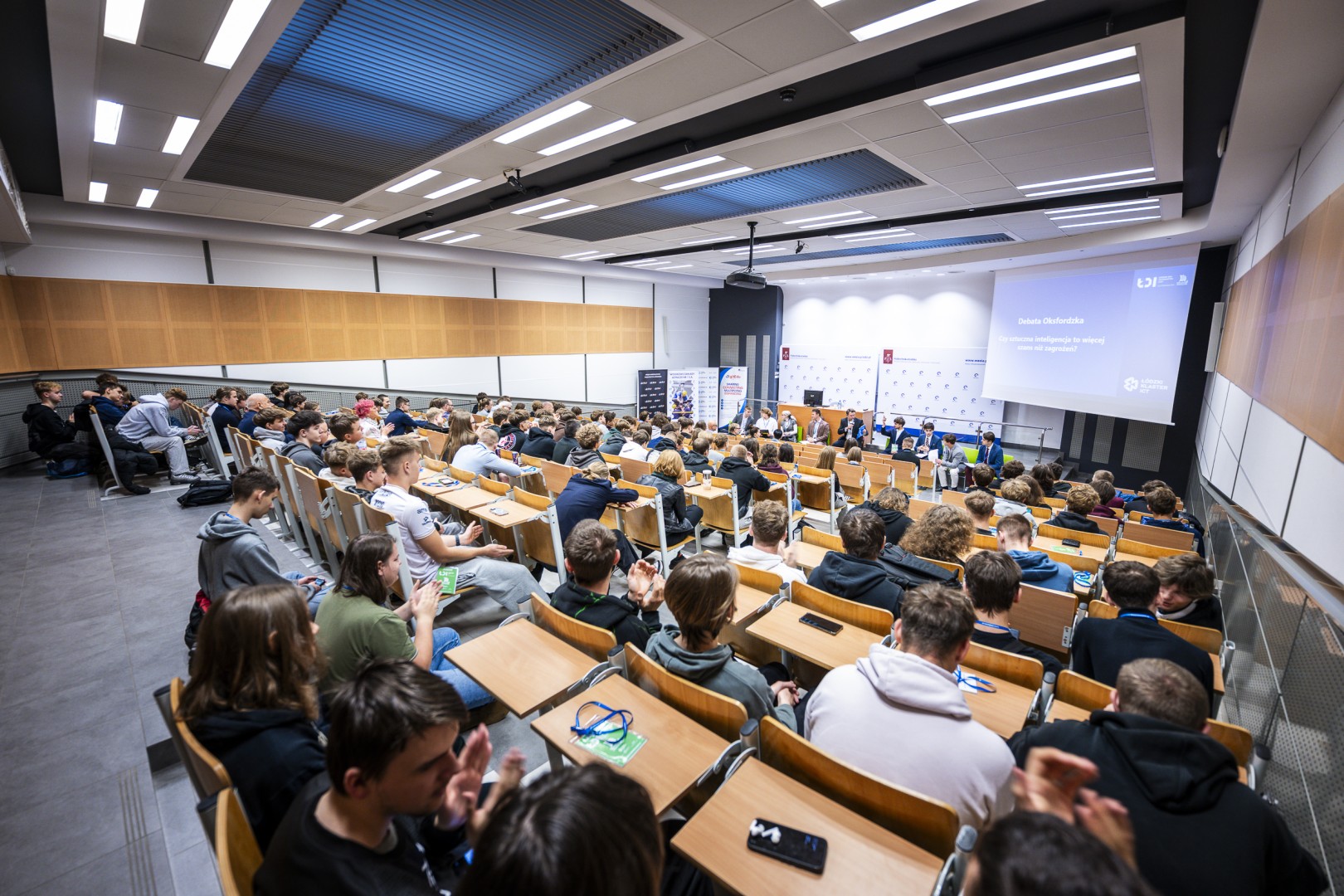 Uczniowie szkół średnich również mieli zapewniony szereg atrakcji w trakcie wydarzenia – m.in. debatę oksfordzką „Czy sztuczna inteligencja to więcej szans niż zagrożeń?”, wykłady i warsztaty, a także możliwość poznania oferty studiów na łódzkich uczelniach.