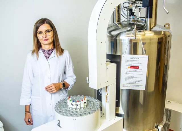 Dr inż. Barbara Pacholczyk-Sienicka w laboratorium Instytutu Chemii Organicznej