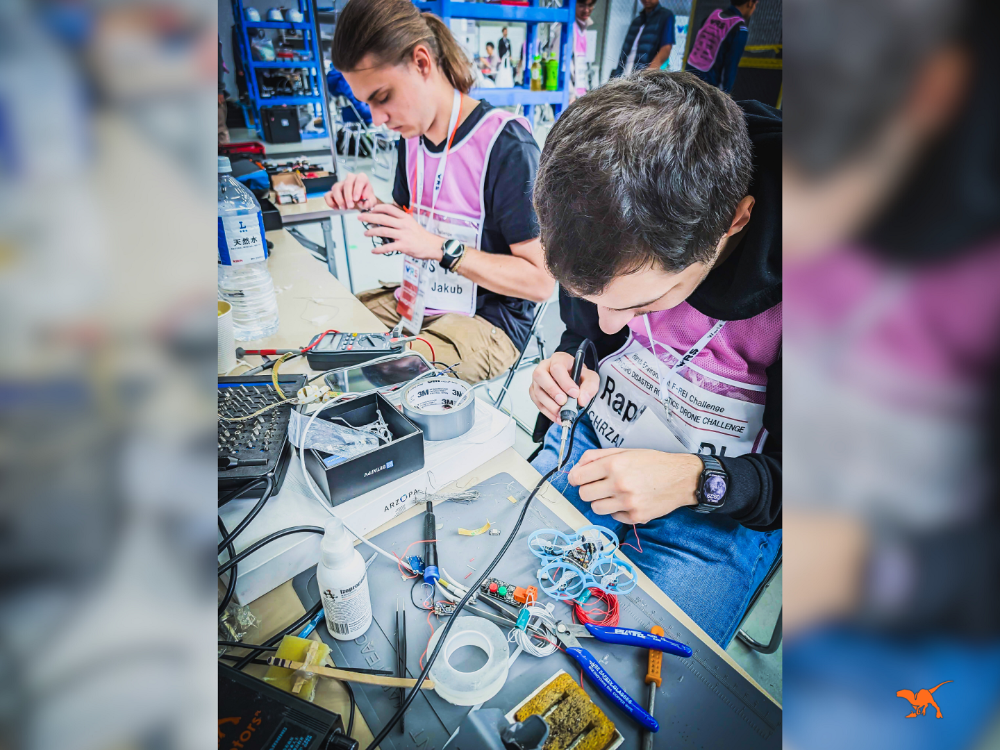 Nawet na miejscu musieliśmy nadal dopasowywać sprzęt do zastanych warunków torów. Po lotach testowych okazało się, że przeszkody są na tyle wymagające, iż konieczne było dodanie odpowiednich osłon na śmigła. Na bieżąco poprawialiśmy nasze programy do detekcji wizyjnych, aby zmaksymalizować ich skuteczność – tak, aby drony nie tylko dobrze latały, ale też jak najlepiej „rozumiały” to, co widzą.