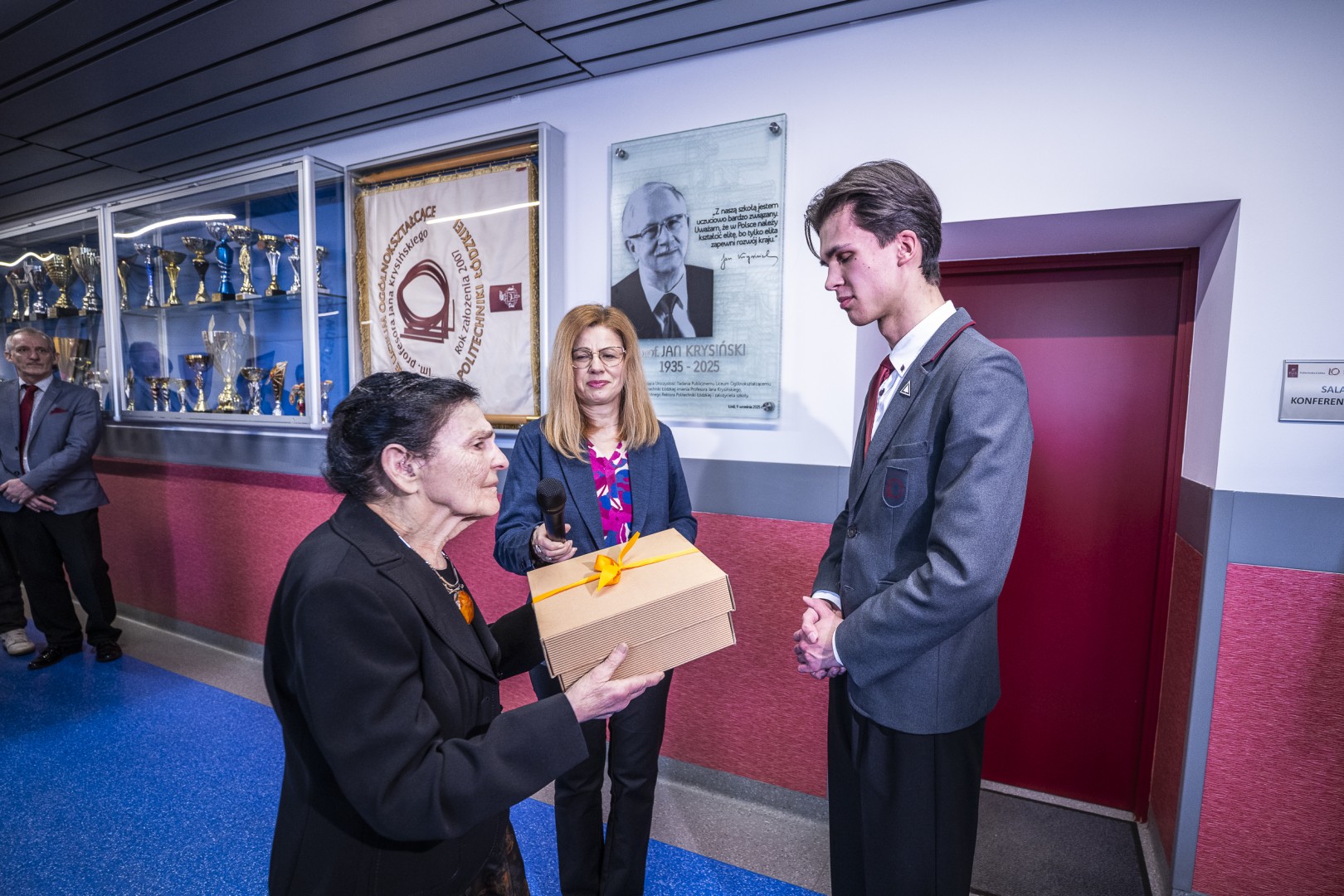 Rektor, prof. Krzysztof Jóźwik, zwrócił uwagę na niezwykłą wszechstronność prof. Jana Krysińskiego – inżyniera, naukowca, organizatora, stratega, a zarazem miłośnika muzyki. Podkreślił jego ogromny szacunek do każdego człowieka, niezależnie od funkcji czy pozycji oraz umiejętność okazywania wdzięczności nawet za drobne gesty. Zachęcał uczniów, by w swoim Patronie widzieli wzór człowieka życzliwego i prawego, budującego relacje oparte na szacunku i prostym, lecz jakże ważnym słowie „dziękuję”.
