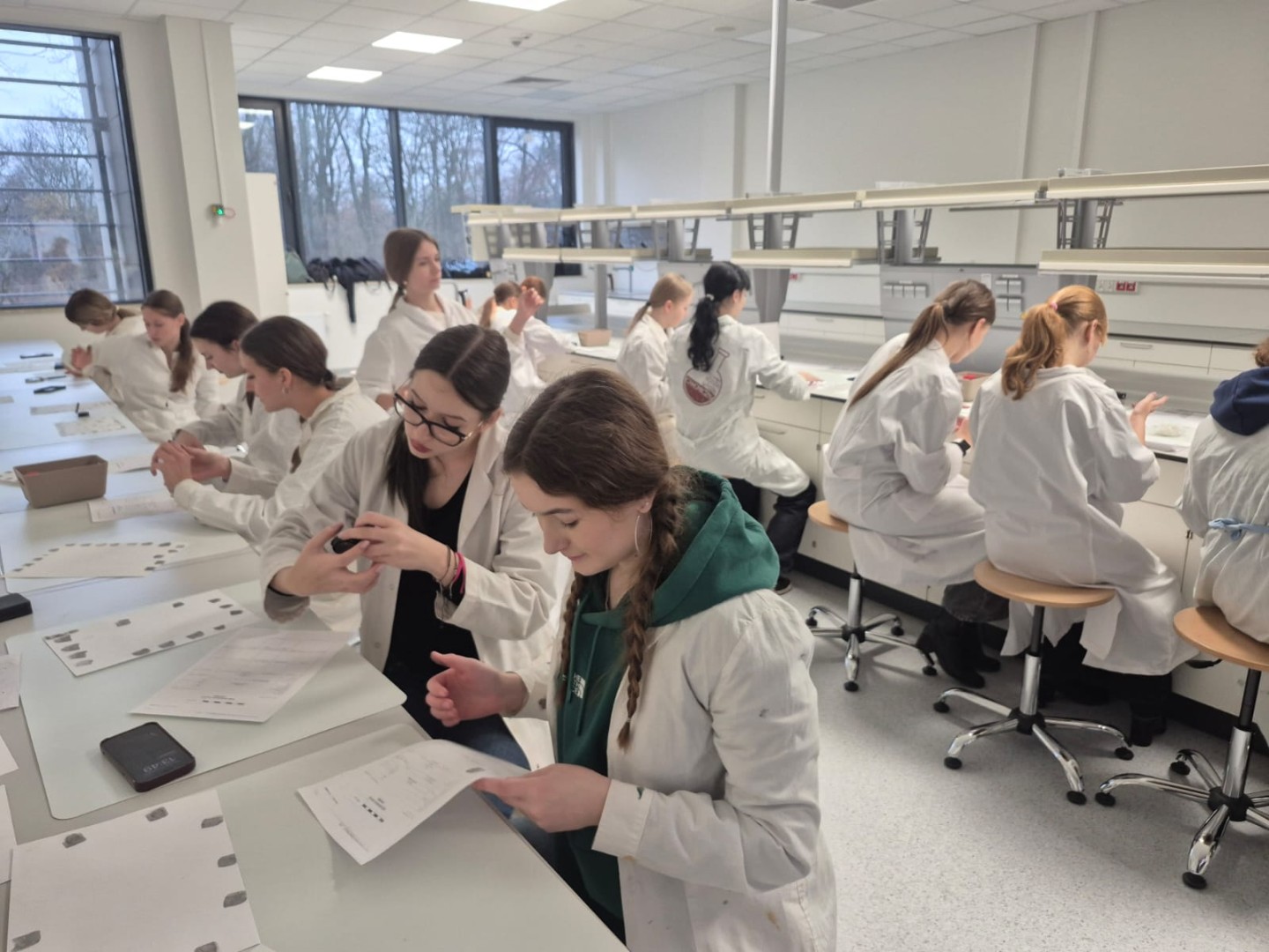 Druga część dnia upłynęła pod znakiem chemii. Po wizycie na Wydziale Chemicznym i zapoznaniu się z jego zapleczem dydaktycznym, uczniowie wzięli udział w zajęciach laboratoryjnych „Daktyloskopia w pigułce”. Praca w laboratorium i możliwość poznania praktycznych zastosowań chemii w badaniach identyfikacyjnych okazały się atrakcyjnym zwieńczeniem wizyty.