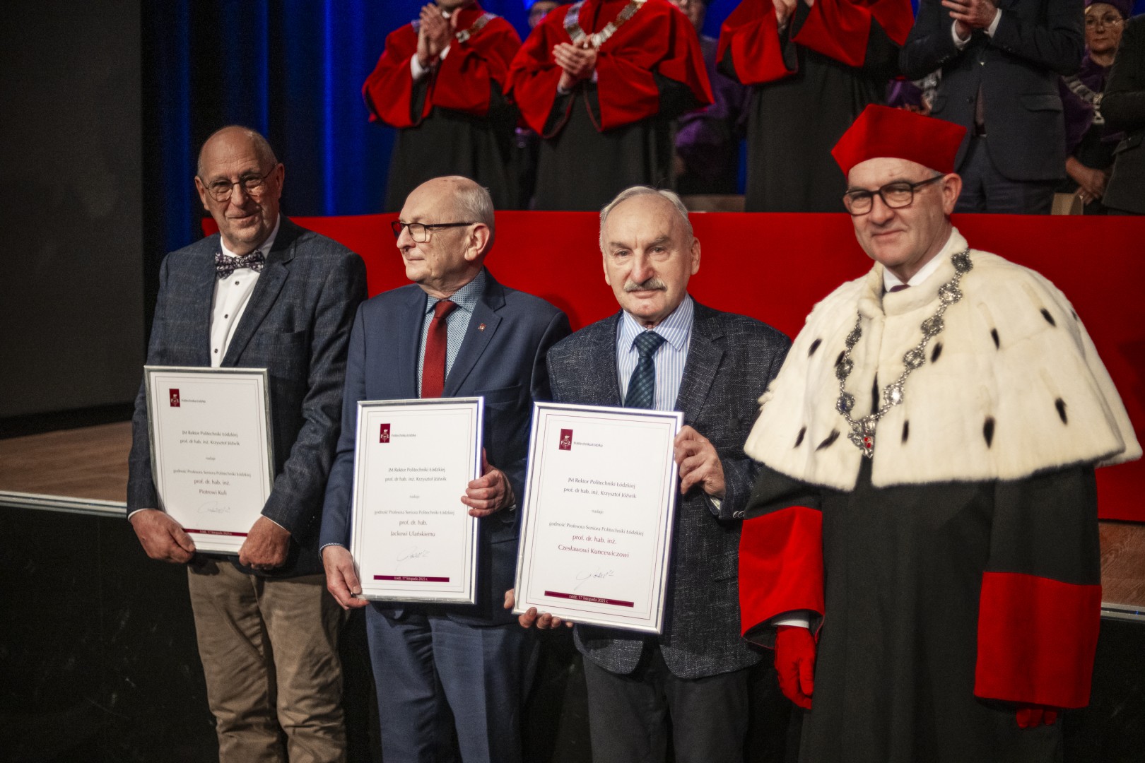 Profesorowie Piotr Kula, Jacek Ulański, Czesław Kuncewicz i Tadeusz Pacyniak – wybitni naukowcy, których dorobek i zaangażowanie w kształtowanie naszej uczelni są nieocenione – zostali uhonorowani tytułem Profesora Seniora. To wyjątkowe wyróżnienie jest wyrazem wdzięczności i szacunku dla ich pracy, wiedzy oraz wieloletniego oddania Politechnice Łódzkiej.