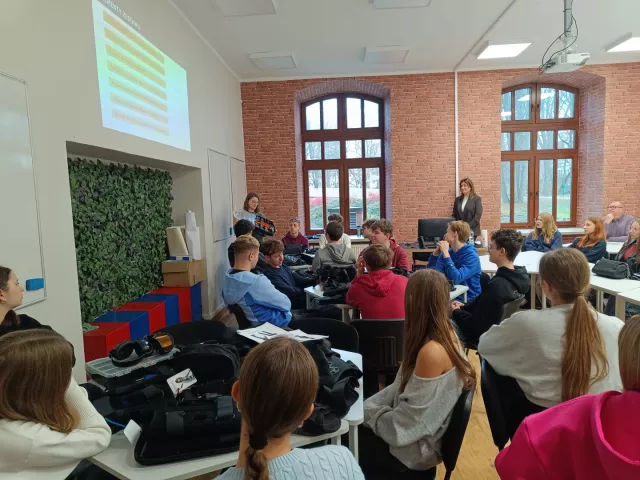 Spotkanie z młodzieżą w sali seminaryjej na Wydziale OiZ