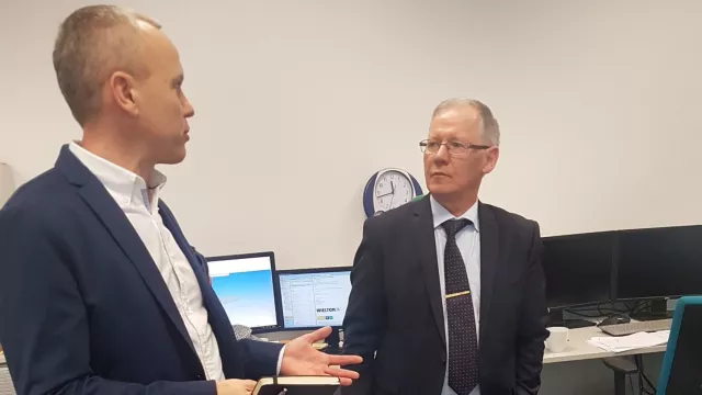 Rektor Politechniki Łódzkiej prof. Sławomir Wiak i prezes Zarządu Spółki Wielton S.A. Mariusz Golec spotkali się w wieluńskiej siedzibie firmy, by przedyskutować możliwości przyszłej współpracy.