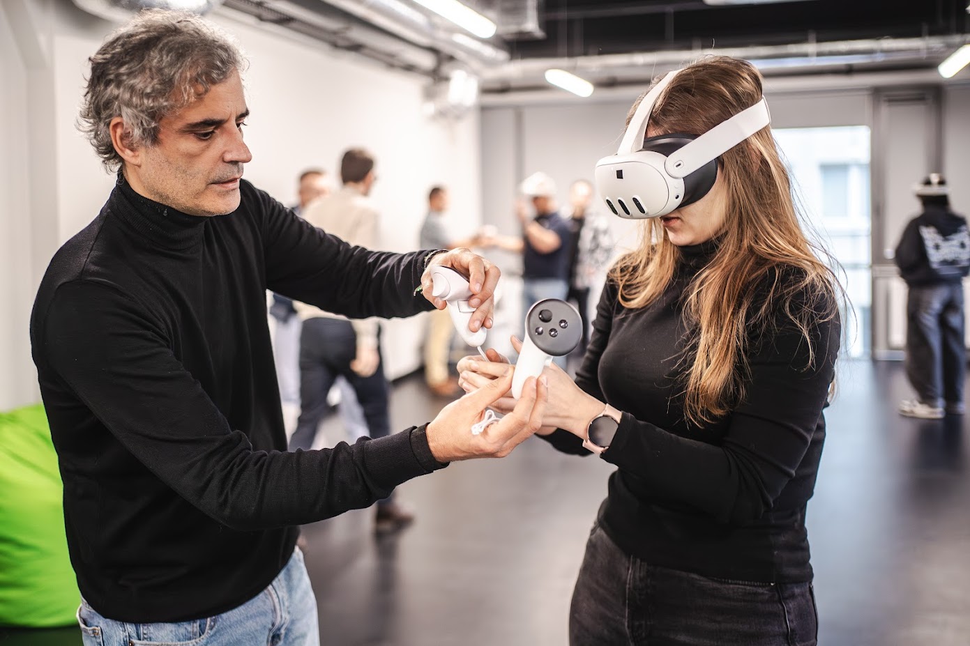 Łódzkie spotkanie miało jednak nie tylko formę prezentacji – było także przestrzenią do praktycznego testowania. W naszym laboratorium partnerzy pracowali z prototypowymi scenariuszami VR, testując ich intuicyjność, jakość interakcji oraz sposób odwzorowania aparatury i procesów chemicznych. Pozwoliło to na bieżąco weryfikować, czy doświadczenia VR odzwierciedlają realia pracy w laboratorium, a zarazem zapewniają pełne bezpieczeństwo użytkowników.