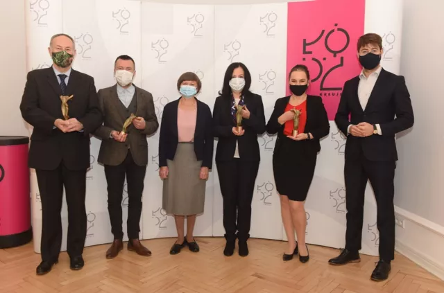 Wśród laureatów jest z PŁ prof. Małgorzata Iwona Szynkowska-Jóźwik (czwarta od lewej) oraz prof. Piotr Borkowski (z lewej)