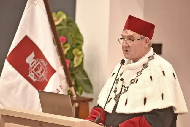 Rektor wygłosił przemówienie mówiące o działaniach sprzyjających rozwojowi uczelni oraz sukcesach naukowców, studentów i absolwentów