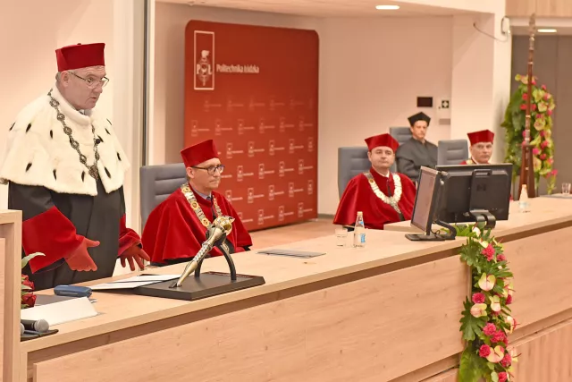 Rektor prof. Krzysztof Jóźwik, rozpoczynając przemówienie nawiązał do sytuacji w Ukrainie - Społeczna odpowiedzialność uczelni to jeden z filarów misji Politechniki Łódzkiej, który nabiera obecnie szczególnego znaczenia. Wciąż jesteśmy poruszeni brutalną agresją Rosji, która zniszczyła nie tylko pokój w Europie, ale również życie i zdrowie tysięcy ludzi. Dziękuję Państwu za liczne gesty wsparcia dla narodu ukraińskiego oraz serdecznie zachęcam do nieustawania w tych działaniach. Jestem przekonany, że dzięki wspólnym wysiłkom możemy ofiarować naszym sąsiadom realną pomoc w walce ze skutkami wojny.