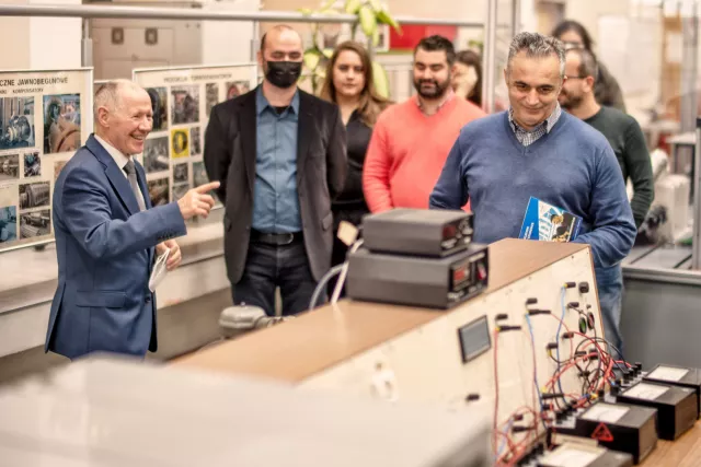 Prof. Sławomir Wiak gościł uczestników spotkania w laboratorium Instytutu Mechatroniki i Technik Informatycznych